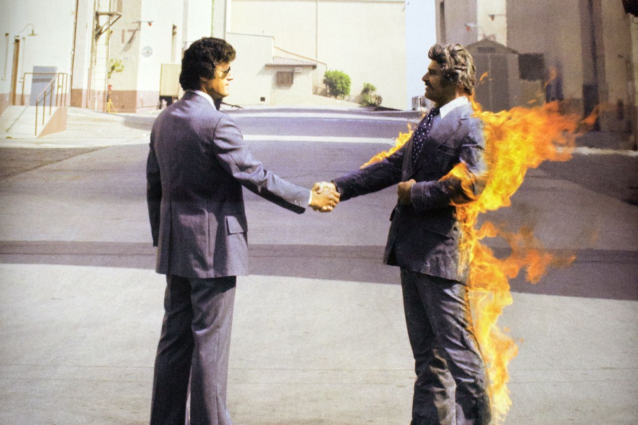رانی راندل جونیور بدل کار نامدار هالیوود که در جلد کاور افسانه ای آلبوم "Wish You Were Here" از گروه پینک فلوید در سال 1975 حرکتی نمادین زد!